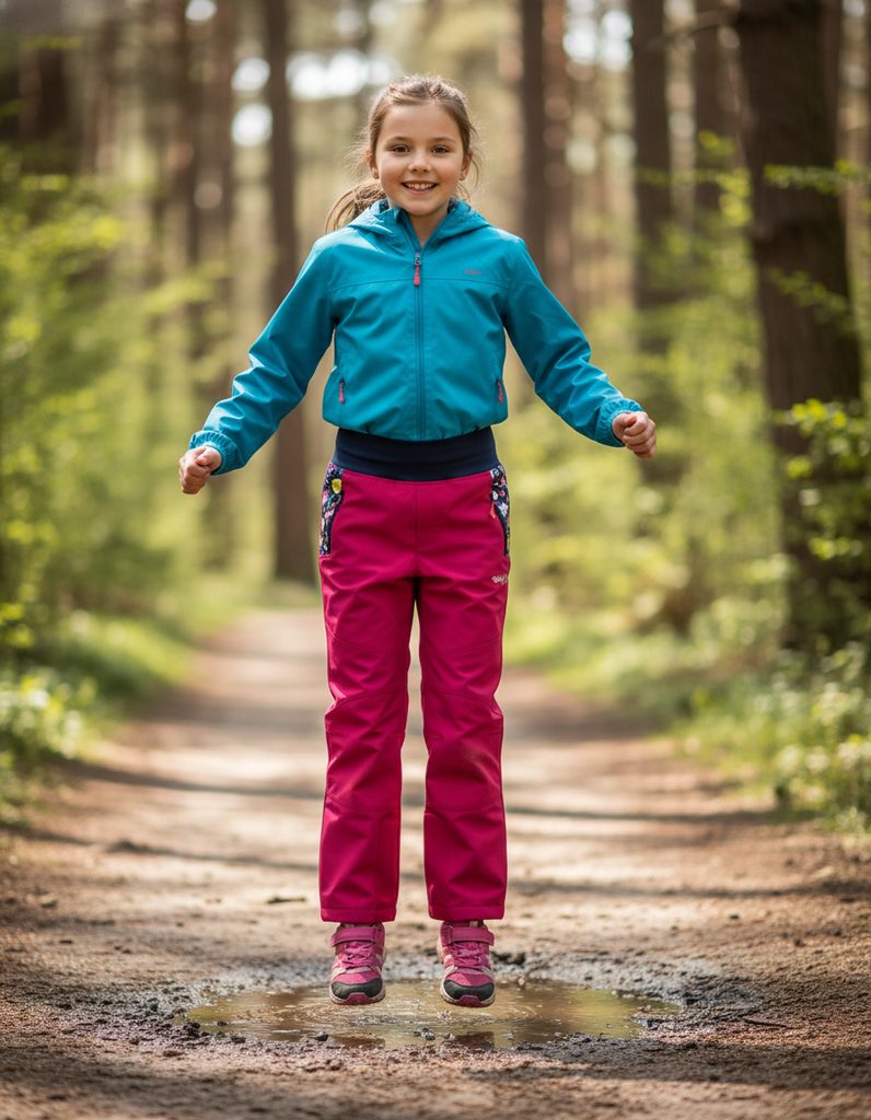 Diese ungefütterte Softshellhose für Mädchen ist wasser-, wind- und luftdicht. Der Bund besteht aus breitem Baumwollgummi, und das Innenfutter ist perforiert. Die Hose hat zwei aufgesetzte Taschen mit Verschluss und ist mit reflektierenden Elementen bedruckt.