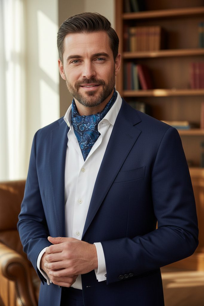 Blaue Ascot-Krawatte mit Paisleymuster
