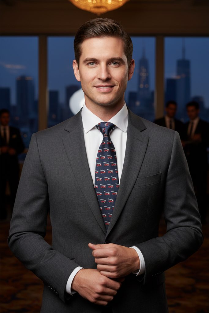 Diese Krawatte verbindet klassische Eleganz mit einem besonderen Motiv. Das rote Feuerwehrfahrzeug auf dunklem Untergrund verleiht dem Outfit Individualität, ohne aufdringlich zu wirken. Perfekt geeignet für Feuerwehrbälle, Vereinsfeste oder feierliche Anlässe. Eine originelle Geschenkidee für Feuerwehrmänner oder alle, die ein außergewöhnliches Accessoire schätzen.