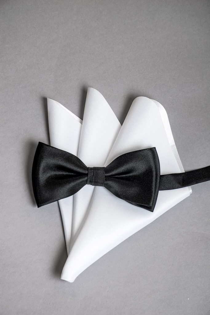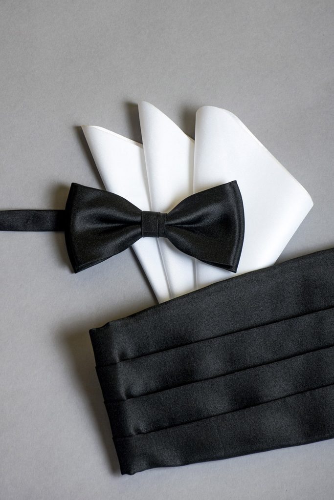 Schwarzes Smoking-Set – Kummerbund, Fliege und Einstecktuch
