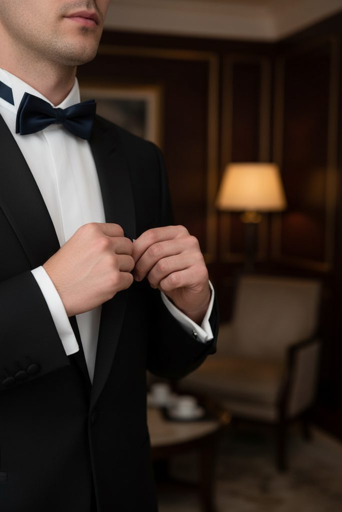 Blaue dunkele Fliege matt 12,5 cm passt perfekt zu allen Frack- oder Smoking-Hemden. An der Rückseite der Fliege ist einen Haken mit einer Öse befestigt, dank dessen die Länge nach Umfang Ihres Halses reguliert werden kann.