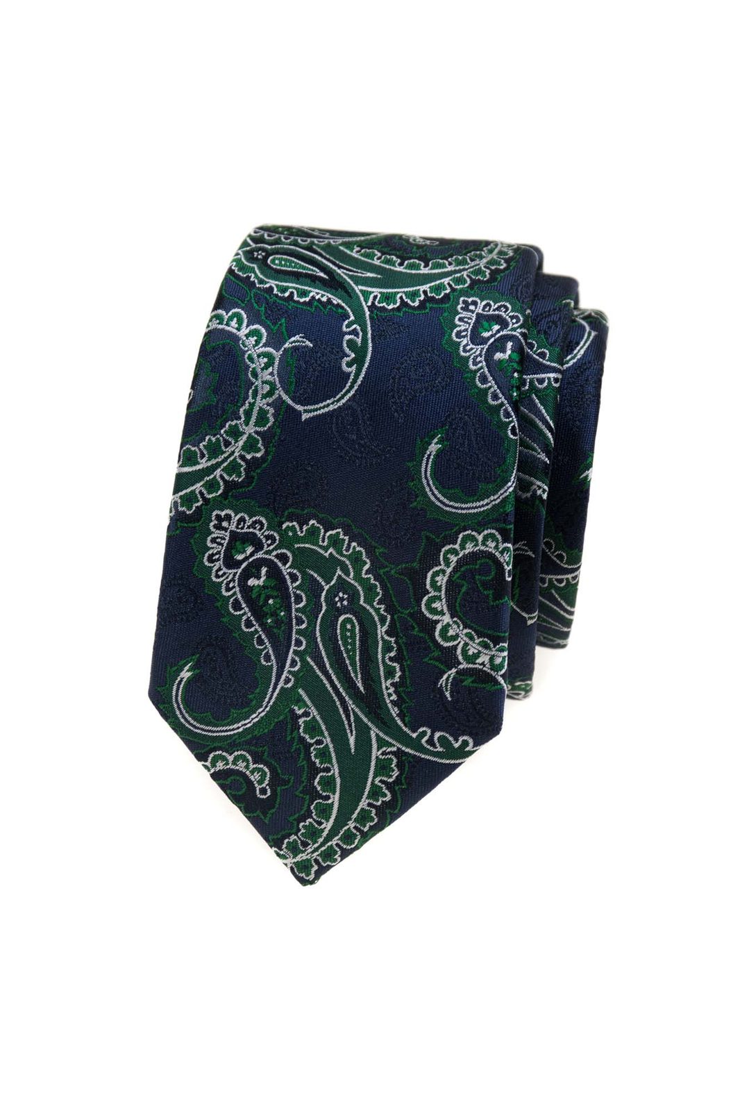 Blaue Slim-Krawatte, grünes Paisley-Muster