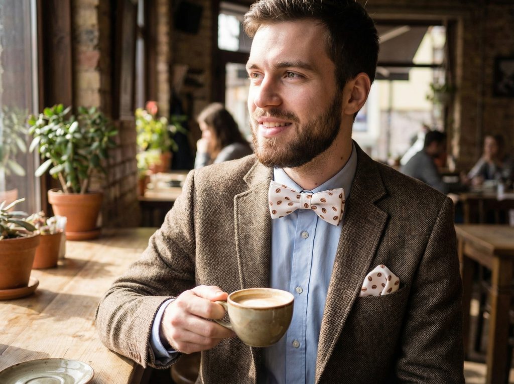 Wie kombiniert man eine Fliege mit Kaffee-Motiv