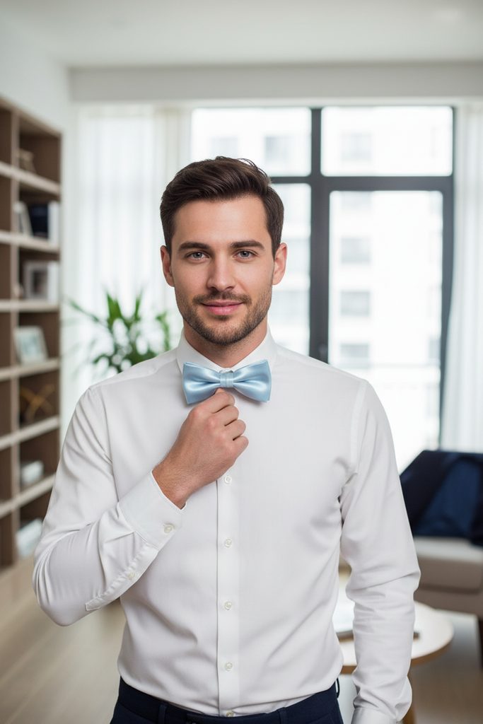 Glatte Herren Fliege hellblau 12,5 cm passt perfekt zu allen Frack- oder Smoking-Hemden. An der Rückseite der Fliege ist einen Haken mit einer Öse befestigt, dank dessen die Länge nach Umfang Ihres Halses reguliert werden kann.