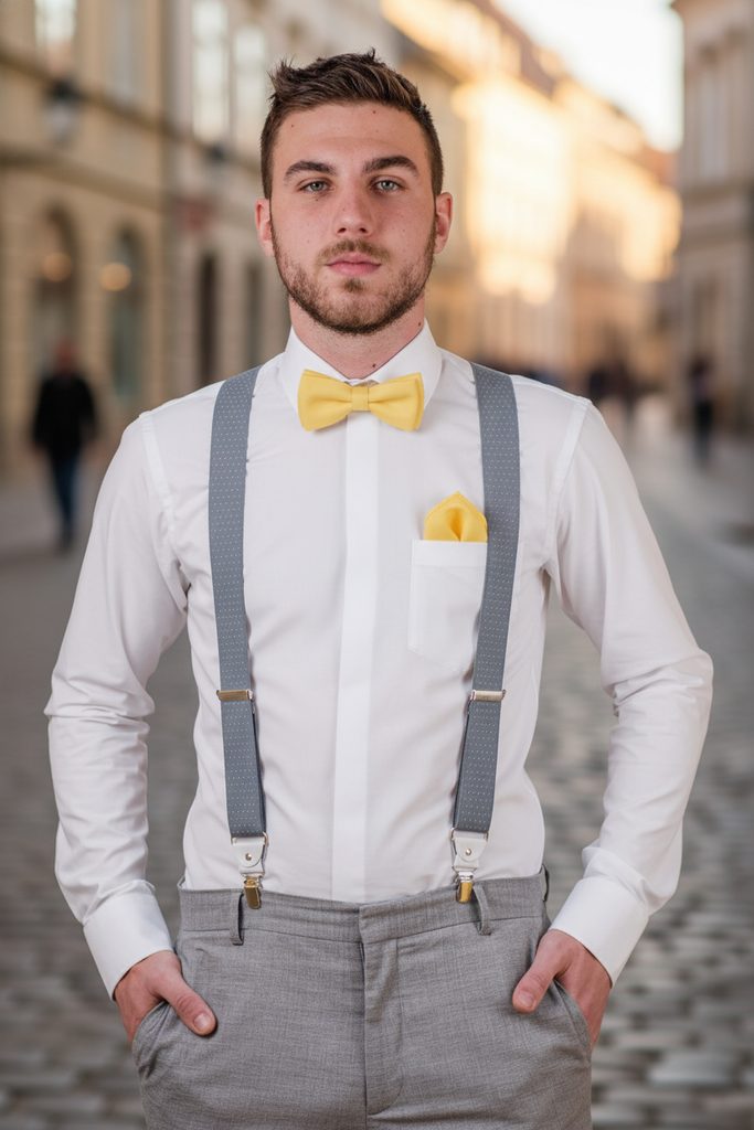 Herren Fliege und Einstecktuch in Gelb 12,5 cm passt perfekt zu allen Frack- oder Smoking-Hemden. An der Rückseite der Fliege ist einen Haken mit einer Öse befestigt, dank dessen die Länge nach Umfang Ihres Halses reguliert werden kann.