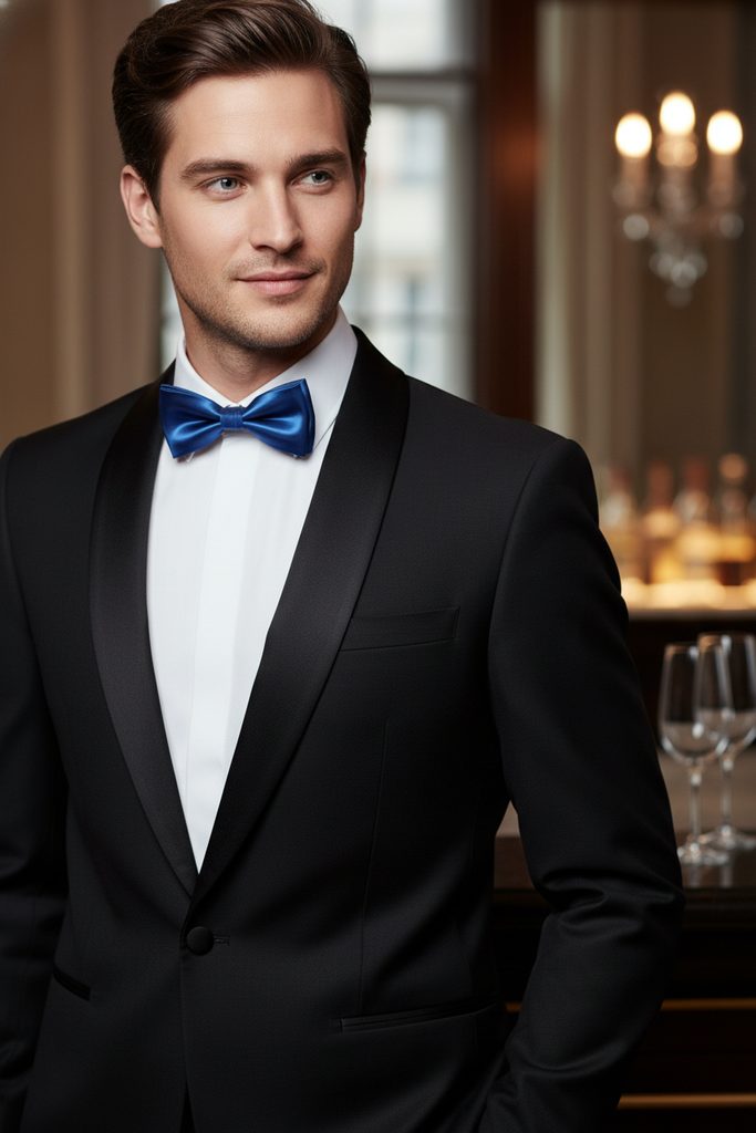 Königsblaue Herrenfliege 12,5 cm passt perfekt zu allen Frack- oder Smoking-Hemden. An der Rückseite der Fliege ist einen Haken mit einer Öse befestigt, dank dessen die Länge nach Umfang Ihres Halses reguliert werden kann.