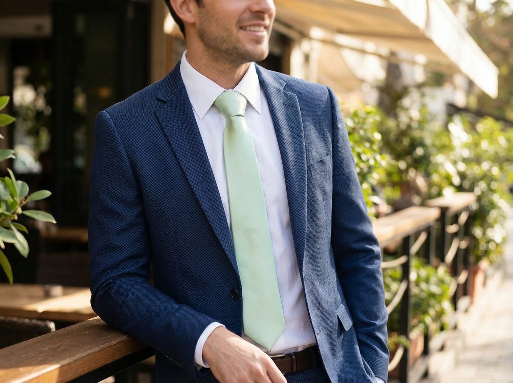 Eine hellgrüne Krawatte kommt besonders gut mit einem weißen Hemd zur Geltung, da der helle Hintergrund den Farbton hervorhebt. Für ein elegantes Erscheinungsbild passt sie hervorragend zu einem dunkelblauen Anzug, der einen stilvollen Kontrast schafft. Ebenfalls harmonisch ist die Kombination mit einem hellgrauen Anzug, wodurch ein leichter und moderner Look entsteht. Ergänzend können ein Einstecktuch im Sakko oder Hosenträger für Herren das Outfit abrunden.