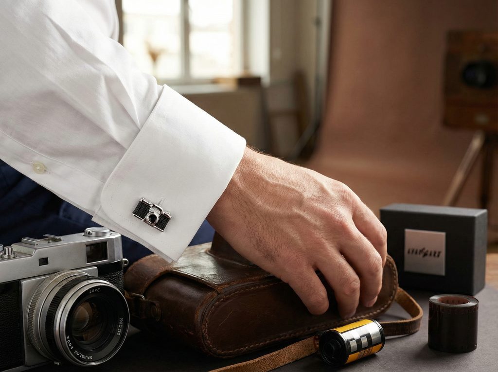 Sie sind ideal für kreative Persönlichkeiten, Fotografen oder alle, die ihre Leidenschaft subtil in ihr Outfit integrieren möchten. Ein Accessoire mit Charakter und Aussagekraft.