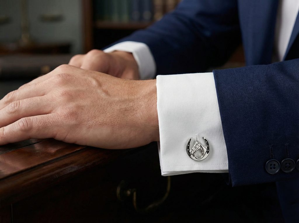 Wie trägt man Hufeisen-Manschettenknöpfe mit Pferd