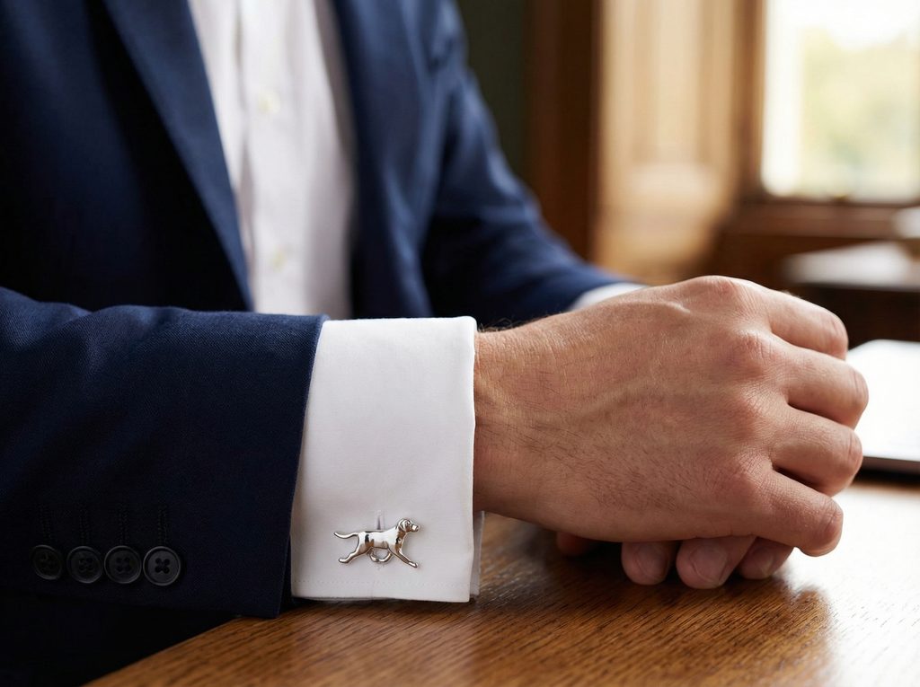 Diese silbernen Manschettenknöpfe in Hundeform verbinden klassischen Stil mit individueller Note. Die fein gearbeitete Hundesilhouette wirkt lebendig und zugleich elegant. Die vollständig silberne Ausführung sorgt für zeitlose Optik und vielseitige Kombinierbarkeit. Ideal für Business, festliche Anlässe oder als stilvolles Geschenk.