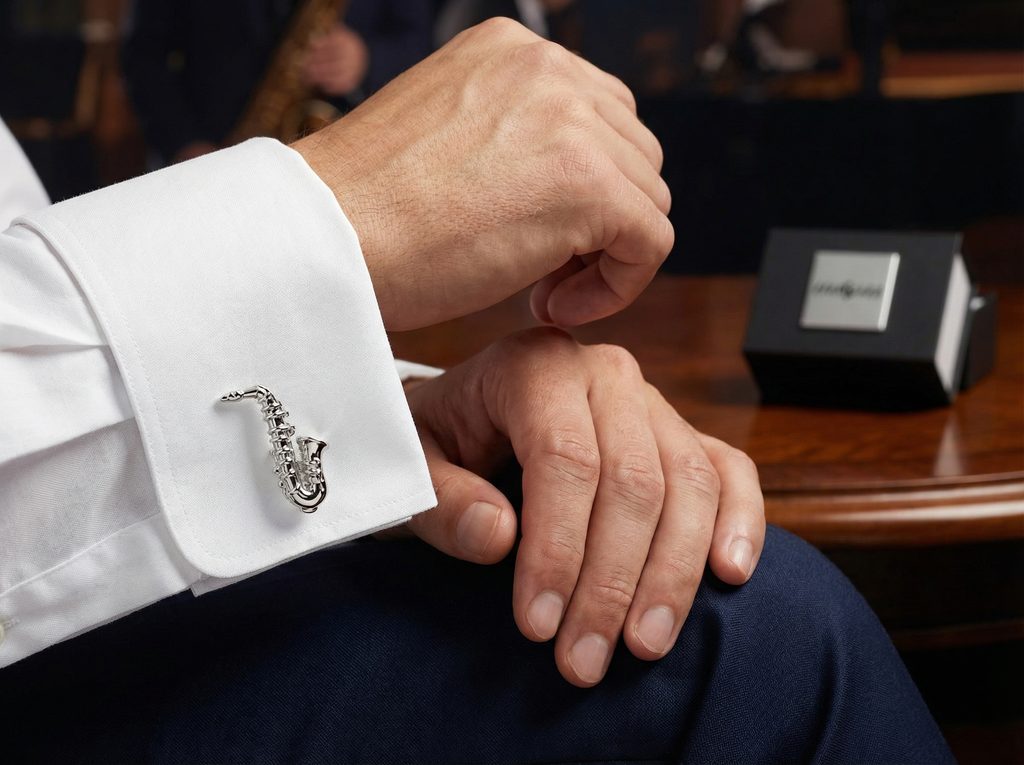 Wie trägt man Saxophon-Manschettenknöpfe