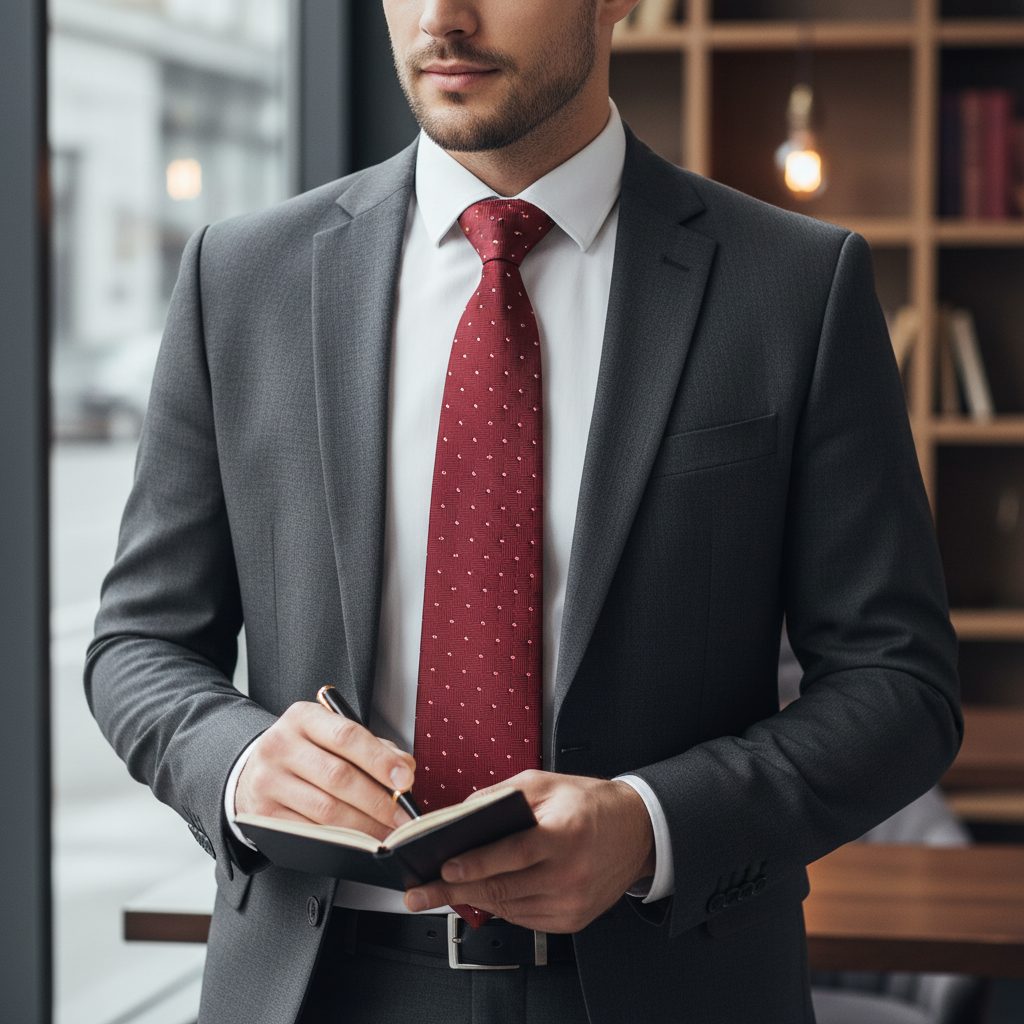 Der Vorteil dieser Avantgard Polyester-Krawatte ist ihre hohe Strapazierfähigkeit. Polyesterfasern sind sehr strapazierfähig und daher zeichnet sich diese Polyesterkrawatte durch einfache Pflege aus. Rote Krawatte mit kleinen Quadraten Breite 7 cm hat im Allgemeinen eine geringe Benetzbarkeit, was bedeutet, dass sie schnell trocknet, wenn sie nass ist. Im Vergleich zu Seidenkrawatten haben Polyesterkrawatten einen geringeren Glanz.