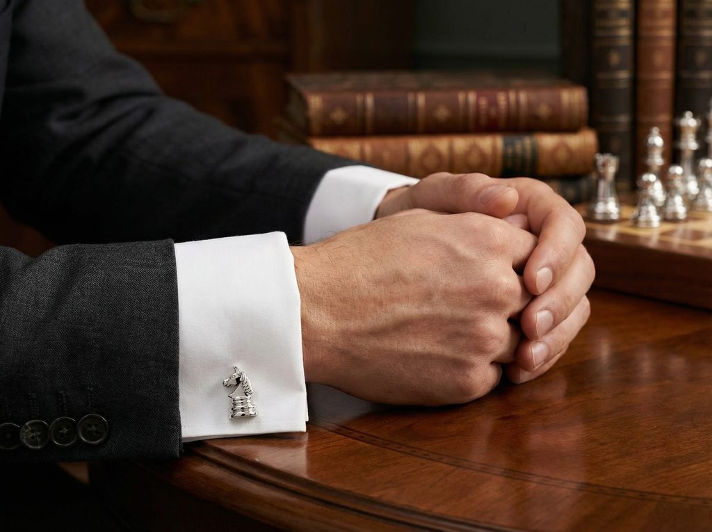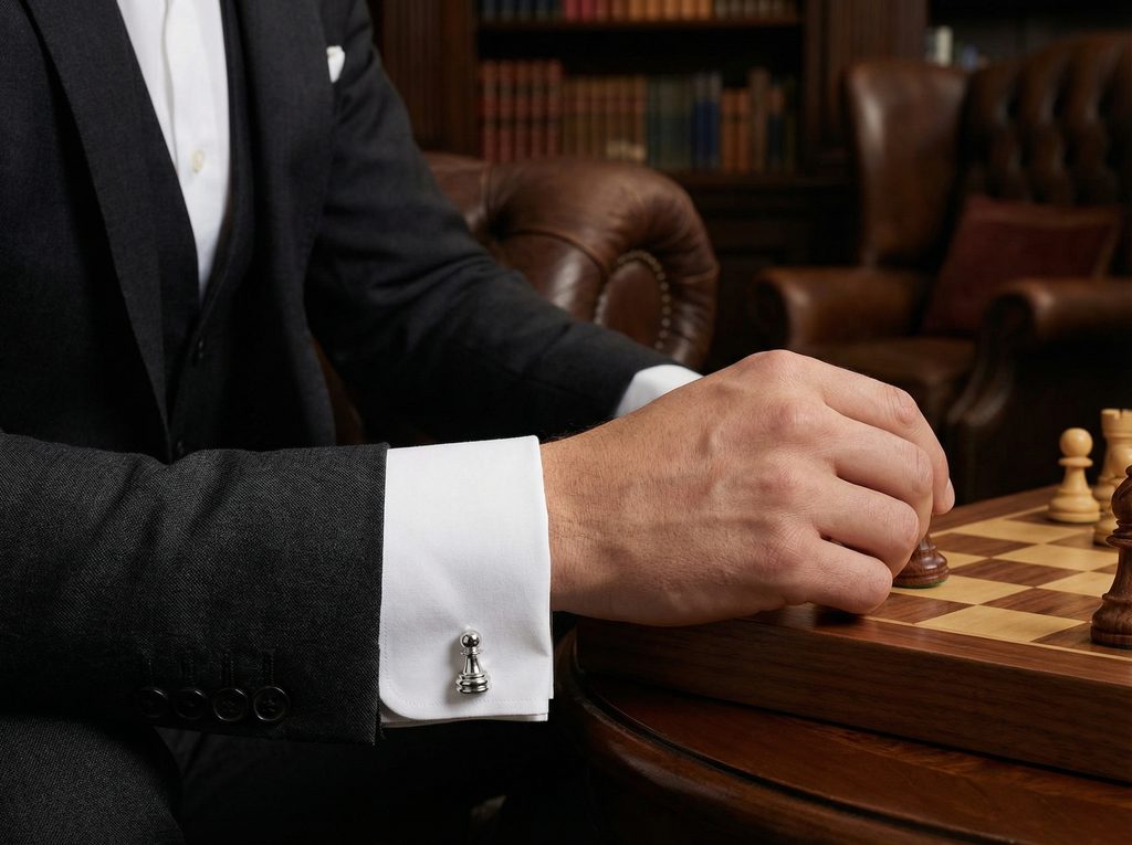 • Schachfiguren Bauer und Springer • Hochwertige silberne Optik • Ausdrucksstarkes Detail • Perfekt für formelle Anlässe