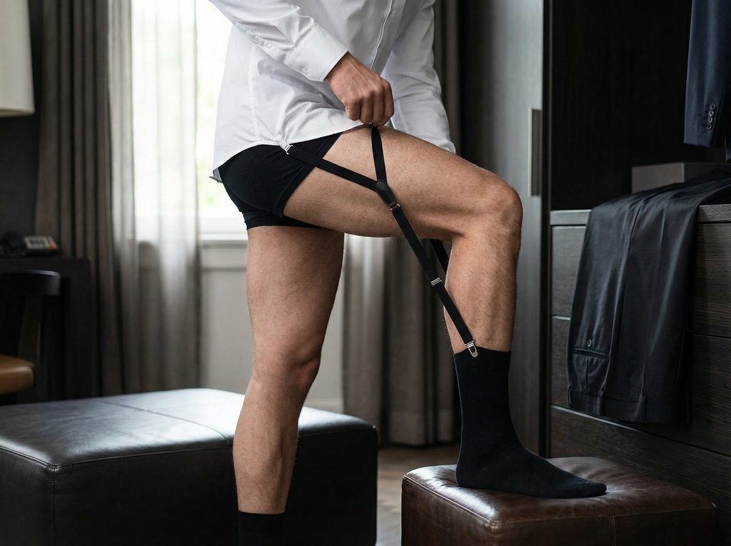 Ein stilvoller Anzug lebt von Präzision. Diese schwarzen Shirt Stays verbinden den unteren Teil des Hemdes mit den Socken und sorgen dafür, dass alles dort bleibt, wo es hingehört.